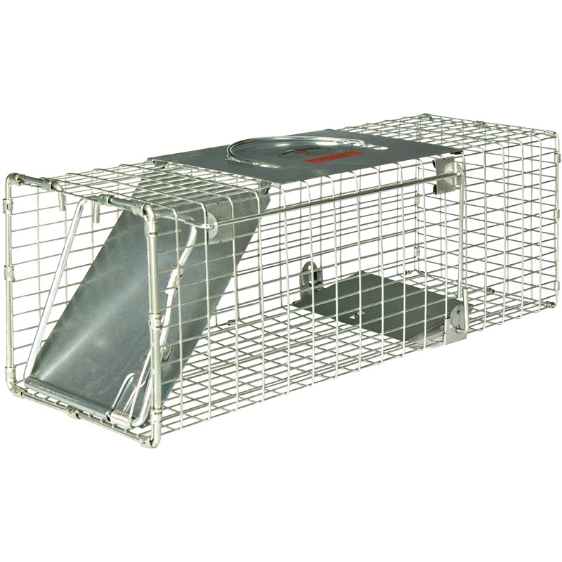 Catches unwanted animals without injury. Heavy galvanized wire mesh with steel reinforcement. Spring-loaded door is easy to bait & set, quick to release. Convenient carrying handle. For rats, weasels, red & flying squirrels, chipmunks & other similar-size animals.