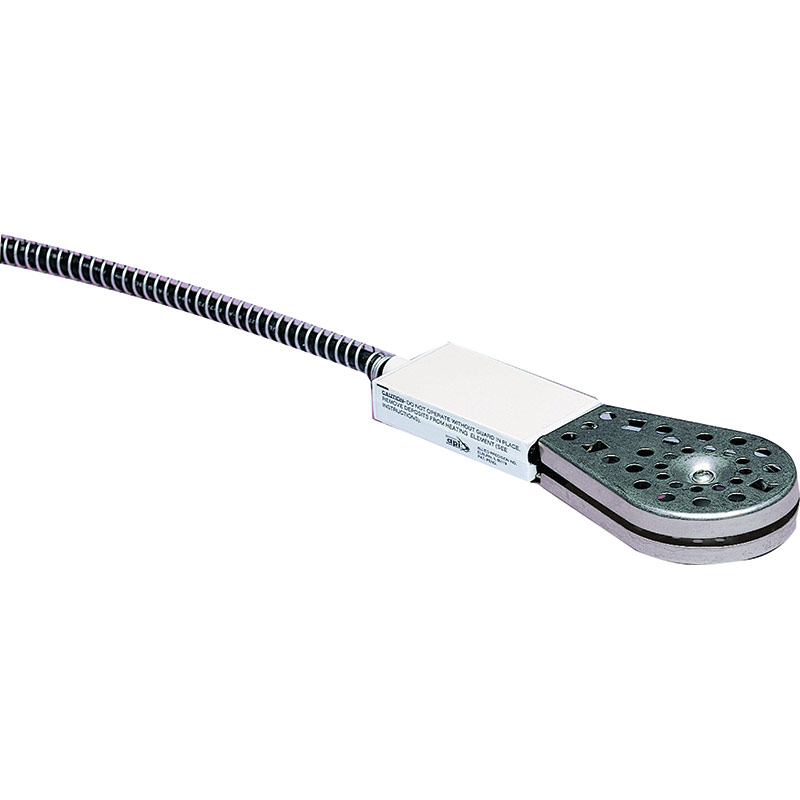 De-icer for buckets, pails, pans or bird baths. Comes with a stainless steel guard, six foot cord, cord chew protector & built in thermostat. Adjustable clamp is also included. 200W.
