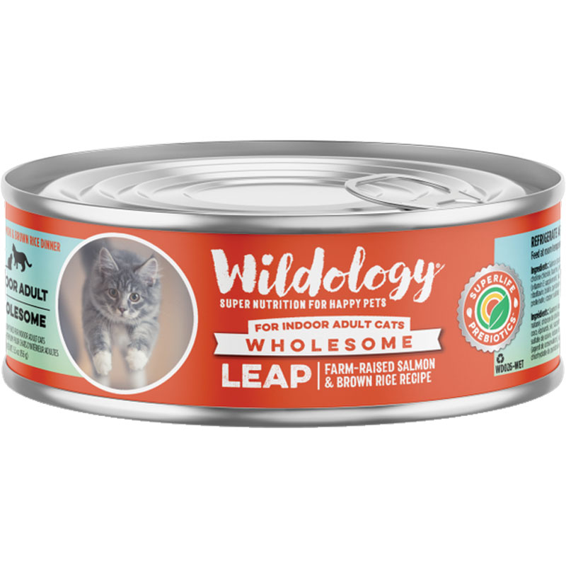 5.5 Oz. Wildology Leap Indoor Adult Cats Farm Raised Salmon & Brown Rice Recipe Cat Food