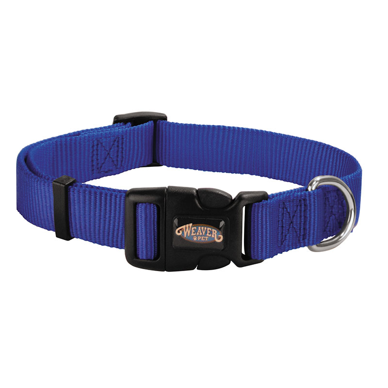 Made from flexible, single-ply nylon, this collar is easy on the hair coat, adjusts to fit a variety of sizes & is box-stitched at stress points for durability & style. Features a nickel-plated dee, black plastic slide, black plastic contoured quick-release buckle & black plastic keeper. Not recommended for tie out. Each Weaver collar provides more collar for your dollar with an extra 2" for adjustment. Measures 3/4" x 13" - 19".