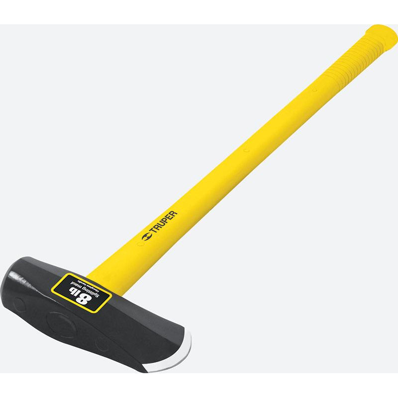 Double injected fiberglass handle with rubber grip for improved handling and control. Overstrike protected rubber guarded handle. Drop forged maul round bevel-edged striking face. Maul is 8 lb. & has a 36" handle.
