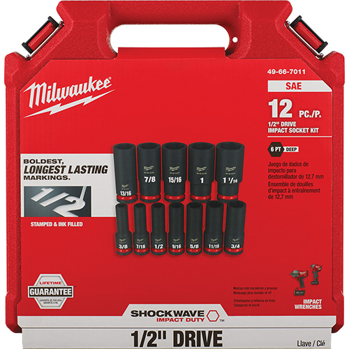 12 Pc. Milwaukee Tool Shockwave Impact Duty 1/2" Drive SAE Deep 6 Point Socket Set