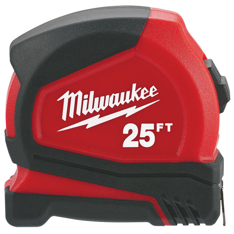 Our 12ft Compact Tape Measure has up to 25' of reach. These are equipped with wear resistant nylon blade protection and an impact-resistant 5-point reinforced frame to withstand the jobsite. An integrated stamped steel belt clip allows you to easily carry the tape measure with you around the jobsite.