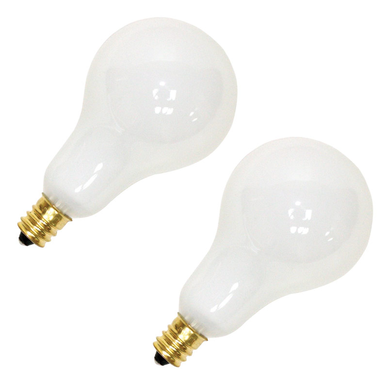 120V. A15 candelabra screw (E12). Soft white ceiling fan. 2 Pk.