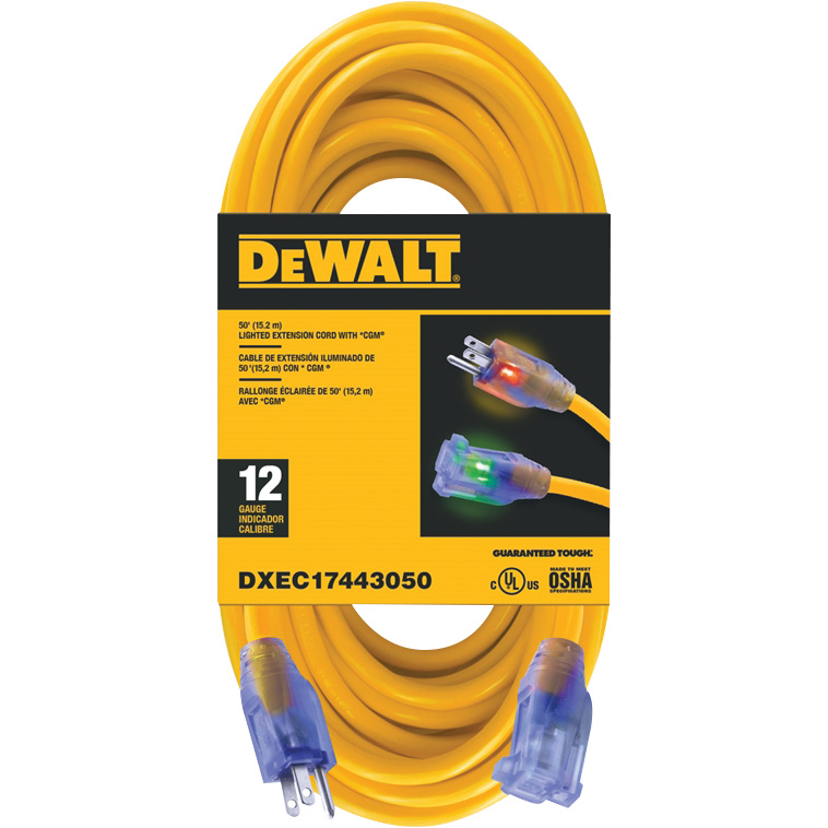 50' Dewalt 12 Gauge Lighted Extension Cord
