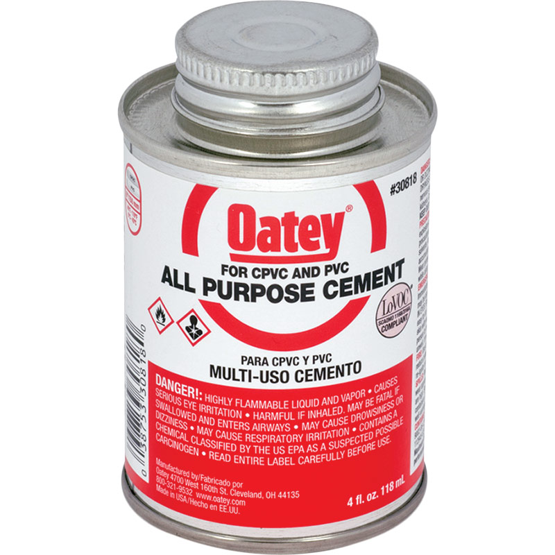 For ABS, PVC & CPVC pipes and fittings. Heavy bodied, clear for all pipe schedules to 12". Apply at temperatures 40° F-110° F. 4 Oz.
