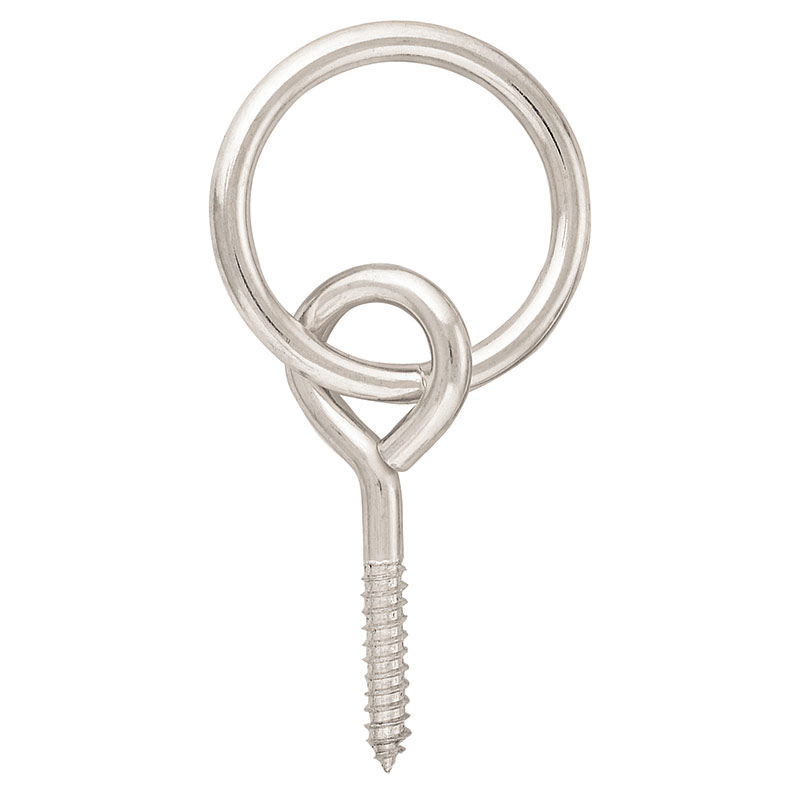 Handy screw eye with ring combination is great for mounting cross ties & tying horses. Easily screws into a wall or post. Zinc plated finish. 3" screw; 2" ring.