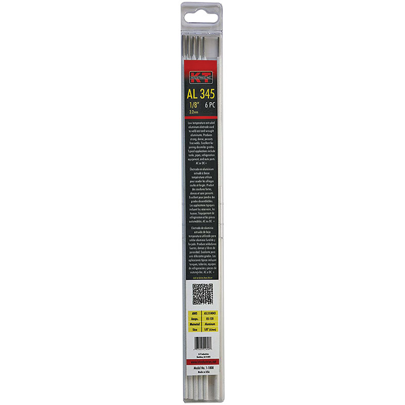 Typical applications include tanks, pipes, some appliances, refrigeration eqiupment, automobile parts & parts found in the laundry, chemical & food processing industries. Large or heavy sections should be beveled before welding. Use in DC+ in any position. 1/8" 85-140 operating AMPS.