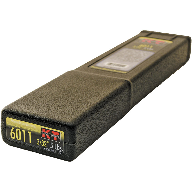 Premium welding electrodes can be used to weld through paint, dirt, mill scale or rust. 82,000 PSI tensile strength. This product has a strong arc force & rapid solidification of weld metal which allows vertical or overhead welding. 6011 is good for jobs that have poor fit up in the joints, rusty or oily metals. 3/32", 65-90 AMPS.