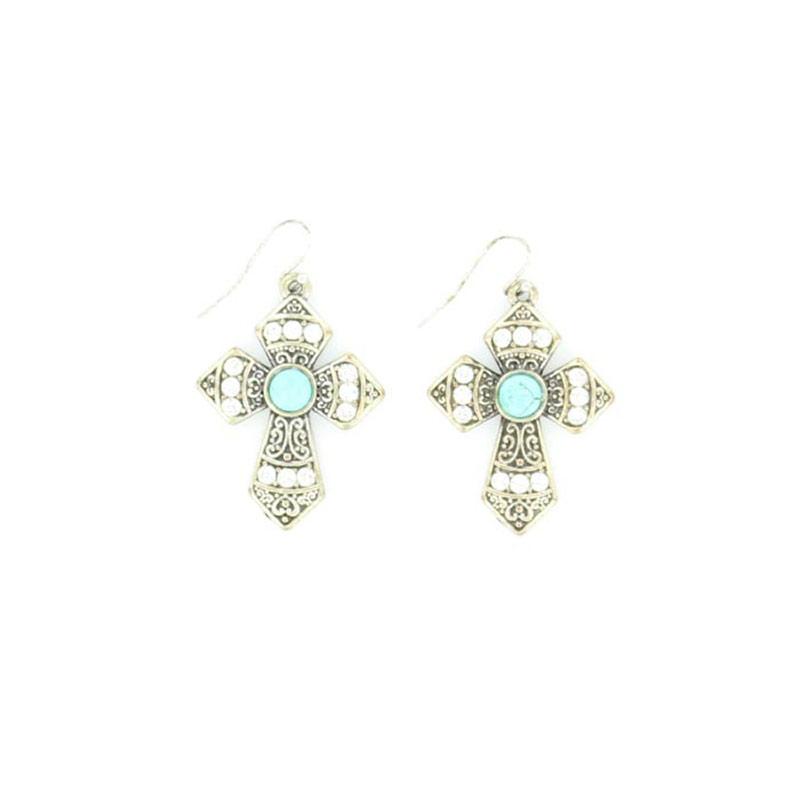 Women's Blazin Roxx Turquoise & Silver Cross Earrings